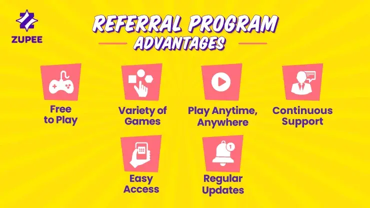 The program lets you invite others to join Zupee using your referral link. You receive rewards when someone signs up and completes the required steps.